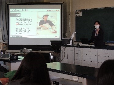 5月12日(水)7限の総合的な探究の時間に、2年次生活ビジネス科の生徒69名は本校体育館で(株)さん……
