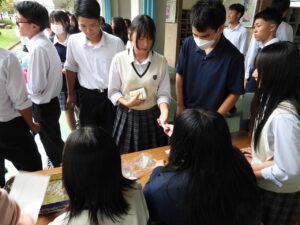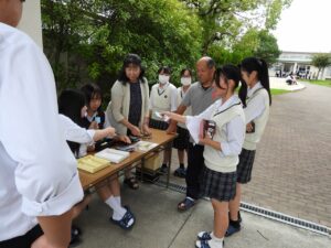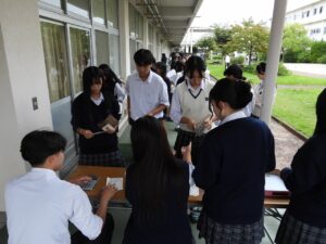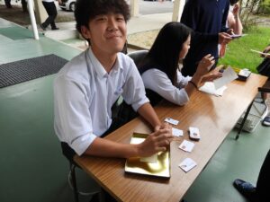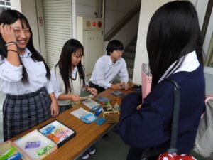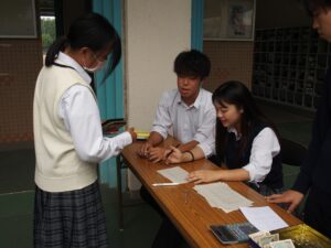 まずは3年生による各クラスの模擬店のチケット販売の様子です。