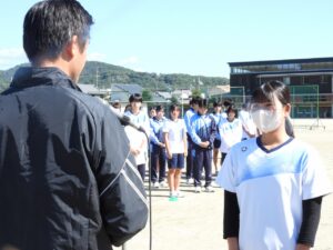 水泳 中国大会 壮行式投稿者: oku01 投稿日: 2025-10-242025-10-2410/25(土)、10/26(日)に山口県で行われる第13回中国高等学校新人水泳競技大会(競泳の部)に出場する1年4組 桝原さんの壮行式を行いました。 桝原さんは自由形部門とバタフライ部門の2種目に出場します。 毎日何時間も泳ぎ練習してきた桝原さん。 生徒みんなで応援しています!頑張ってください!!【地域おこし協力隊:神谷】 カテゴリー: トピックス未分類部活動
