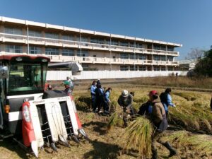 生徒たちが稲刈りをした部分は一部なのであっという間に感じましたが、昔は田植えから稲刈りまで手作業でしていたと思うと農家の方の頑張りと機械の発展に感心しました。