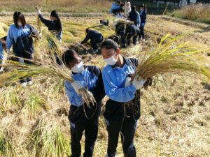 2年次保育・食物コースの生徒が稲刈り体験をしました🌾