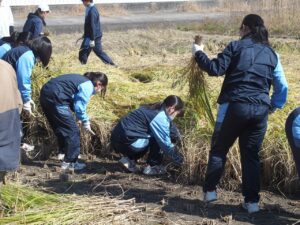 生徒たちは手際よく稲刈りができたので、思ったよりも早く終えることができました。