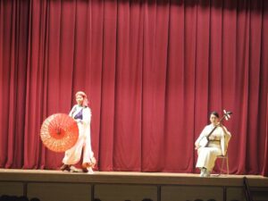 芸術鑑賞会では、瀬戸内市発の市民劇団「大笑い一座」の方々にお越しいただき「黒瀬川を越えて~宇喜多三代、その先へ」を公演していただきました。