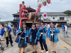 少し前になりますが、セトリー2年文化・歴史グループの生徒が「瀬戸内市の祭りを受け継ぐ」というテーマでの探究活動の一環として、牛窓秋祭りに参加してきました。