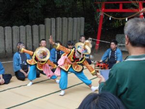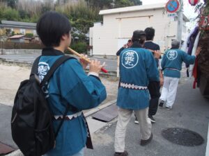 紺浦班2名は、前日の土曜日も参加し、事前にご指導いただいてきた篠笛を吹きながら、だんじりについて一緒に歩いたり、日曜日は唐子踊りを見学したりと、地区の方々にまじって微力ながら祭りを担うことができました。