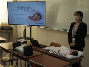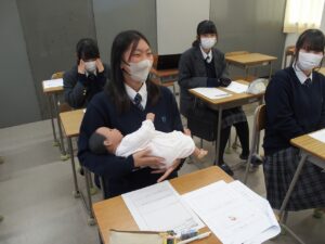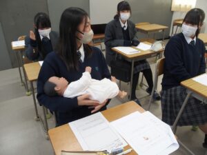 看護医療研究の出前授業⑥投稿者: oku01 投稿日: 2025-12-162025-12-16関西福祉大学と連携した出前授業の第6回目が行われました。 今回は、川崎千春氏に来校していただき、「育児体験」をテーマに授業をしていただきました。前半は赤ちゃんが泣く理由等について、ベビーモデルで育児体験をさせていただく中で教えていただき、後半は新生児の身体的特徴や育児において大切なことを具体例をもとに教えていただきました。 カテゴリー: 授業