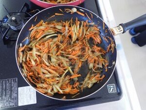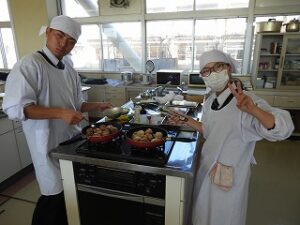 1品1品献立から調理方法まで話し合って皆で協力して作り上げていました。