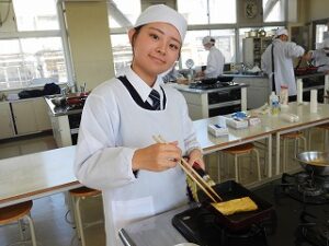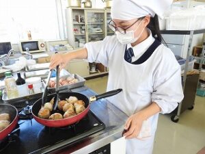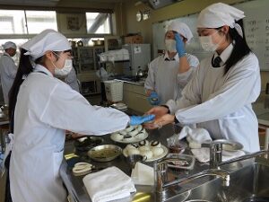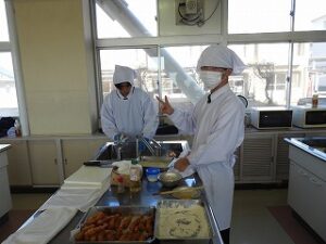 3年間の集大成として生活ビジネス科の食物専攻が先生方に感謝のお弁当作りを行いました。