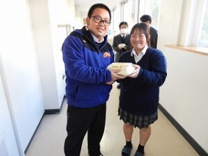 どの料理もおいしく、手渡された先生方も3年間の成長を感じて、笑顔で完食していました。