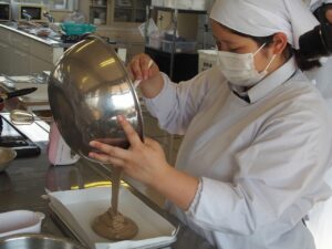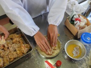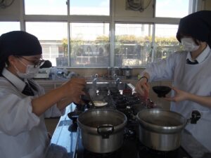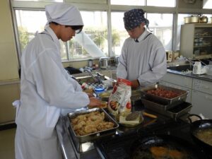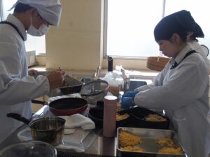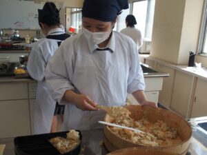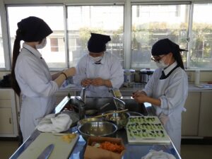 もんげぇ食堂準備編投稿者: oku01 投稿日: 2025-12-182025-12-18先日、3年次生活ビジネス科・食物専攻の生徒たちが、日頃お世話になっている教職員たちに「もんげぇ食堂」を開いてくれました。 今回の記事は、もんげぇ食堂の準備編です。 提供するメニューは、どどめせとデミカツ、白和えにすまし汁、デザートにロールケーキが入った豪華なお弁当です。 限られた時間でテキパキと準備をして、いざ開店! どんな風になったかは次の記事に。👏【地域おこし協力隊:神谷】 カテゴリー: トピックス学び合い課題研究進路