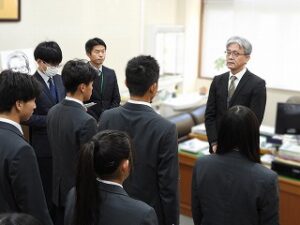 新生徒会執行部、始動!!投稿者: oku01 投稿日: 2025-12-292025-12-29令和7年度 後期生徒会執行部が発足しました。(任期は12月~来年度5月) 先月行われた役員選挙で当選した、生徒会長をはじめとする8名は、校長室での任命式と職員室でのお披露目式に出席し、立派な姿で抱負と意気込みを語ってくれました。 前期からの経験者に新メンバーも加わった新執行部、これからの活躍に期待です! *2025年12月27日(土)~2026年1月4日(日)は、学校閉庁日です* カテゴリー: トピックス生徒会