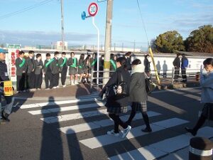 今年も、気持ちの良い1日の始まりはあいさつから!投稿者: oku01 投稿日: 2026-01-162026-01-16毎月10日は県下一斉あいさつ運動の日です。先日もあいさつ運動を行いました。 今回は、今年度最後の運動日ということで、多くの生徒会執行部とクラス委員長が通用門前に立ち、登校してくる本校生徒や、隣接する瀬戸内市役所の職員の方々にも爽やかなあいさつを呼びかけてくれました。 今年も朝のあいさつを心がけ、気持ちよく1日を始めましょう! カテゴリー: トピックス委員会生徒会行事