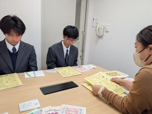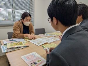 福祉グループでは「共生社会」をテーマに、瀬戸内市の福祉について幅広く調査しています。その一環として、生徒たちが自らアポイントを取り、瀬戸内市福祉課 障害福祉係の西岡めぐみ様にお話を伺いました。