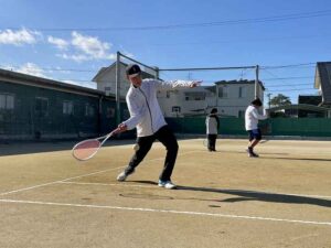 Tennis club テニス部 ソフトテニス部 Soft tennis club 少ない人数ですが男女ともに仲が良く、和気あいあいと日々練習に励んでいます。練習試合や交流大会に参加するなど実践的な活動も取り入れています。ソフトテニスが好きな経験者も未経験者も大歓迎しています。活動曜日:月火木金・土